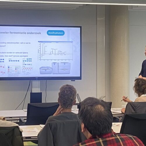 Tijdens deze bijeenkomst deelden experts hun inzichten en ervaringen over de nieuwste trends en innovaties in fermentatie. Deelnemers kregen de kans om een voorbeeldproject over de fermentatie van zeewier te zien, een rondleiding in het lab te volgen en te proeven van diverse gefermenteerde producten.